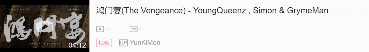 随着说唱乐在多元文化语境中的普及,其题材不再局限于传统的黑帮故事的同时,又通过回溯早期说唱音乐beat特征或是描述兄弟情谊与背叛的做法完成了「黑帮」符号叙事的持续在场。YoungQueenz早期的作品《鸿门宴(The Vengeance)》MV讲述了一个黑帮之间的「鸿门宴」事件,影片的最后隐去了歌词中所暗示的杀戮情节,独留YoungQueenz一人继续在天台上悠闲地小酌,这个镜头中从容不迫的表象与残酷血腥的悲剧涵义具有罗兰巴特(Roland Barthes)所言「黑帮的神话传统」,即一种拟仿诸神不动声色的力量的幻梦场景。