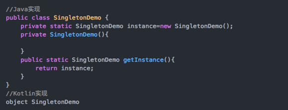 这里有个单例模式的case,java与kotlin饿汉式单例的写法对比。