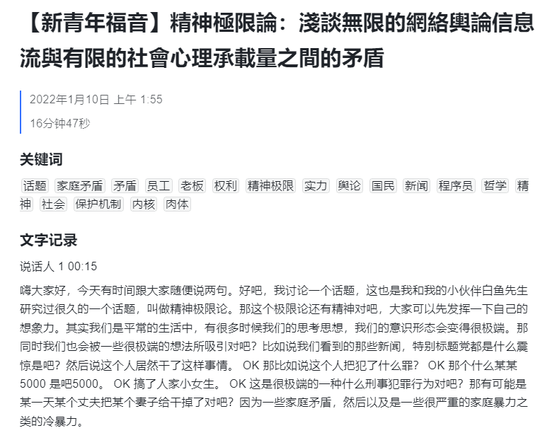 【新青年福音】精神極限論:淺談無限的網絡輿論信息流與有限的社會心理承載量之間的矛盾