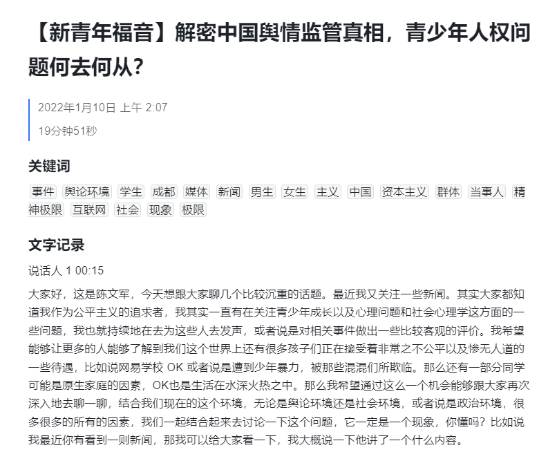 【新青年福音】解密中国舆情监管真相,青少年人权问题何去何从?
