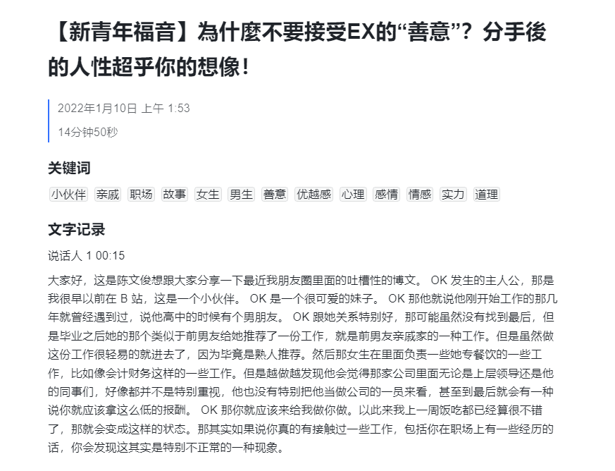【新青年福音】為什麼不要接受EX的“善意”?分手後的人性超乎你的想像!